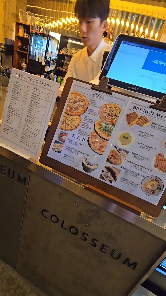 The menu goes beyond typical cafe fare, with brunch options like the 콜로세움플래터 combining fresh vegetables, homemade dressings, and hearty sides including sausage and bacon, making it a solid choice for a start-of-the-day meal. The inclusion of Turkish-inspired items (kaymak with honey) adds a special touch that feels authentic and thoughtfully curated.